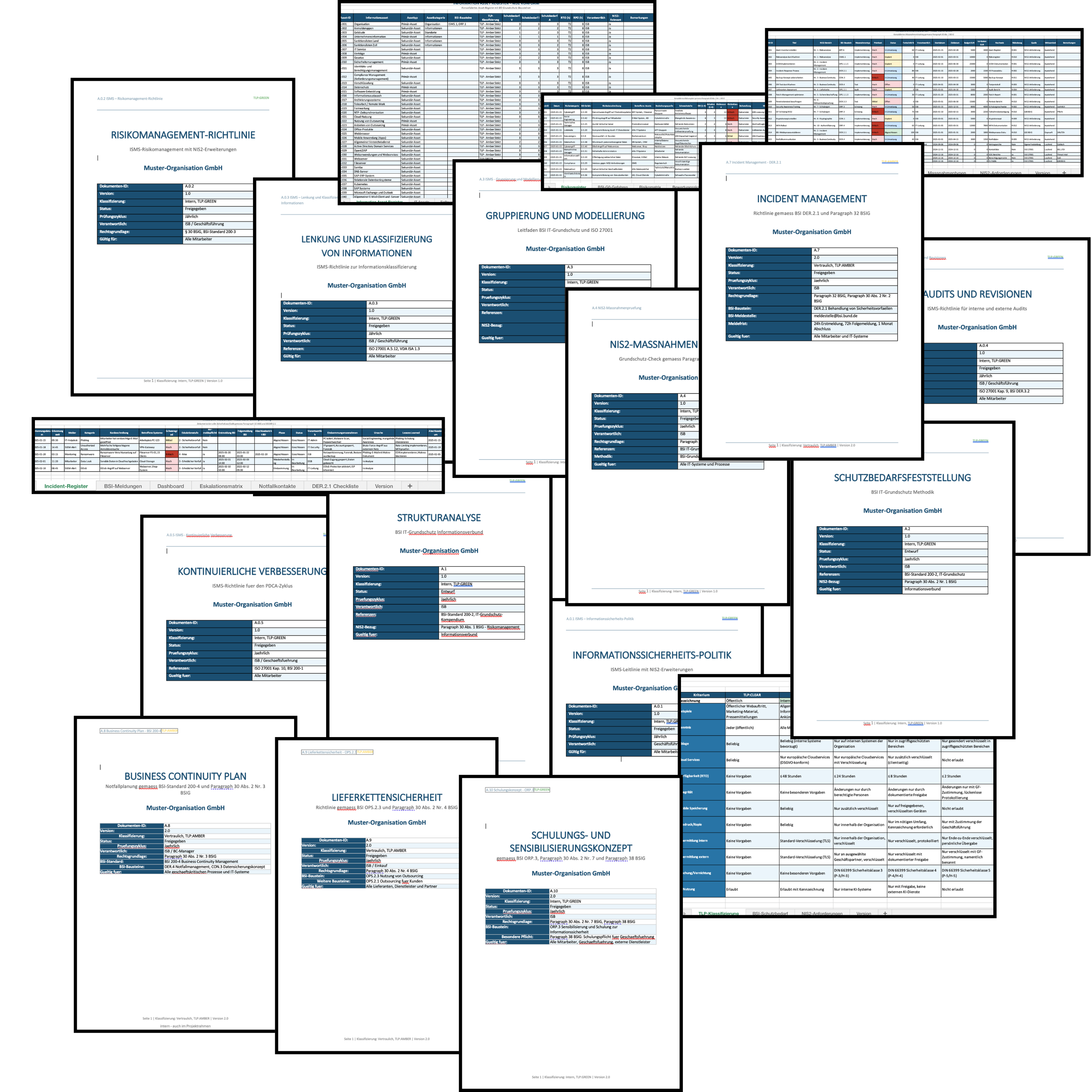 Das Framework liefert dir 18 fertige Dokumente, die du direkt an dein Unternehmen anpassen kannst. Richtlinien, Register, Prüfungen und Pläne greifen ineinander und bilden ein stimmiges System. Du startest nicht bei null, sondern mit einer belastbaren Basis.